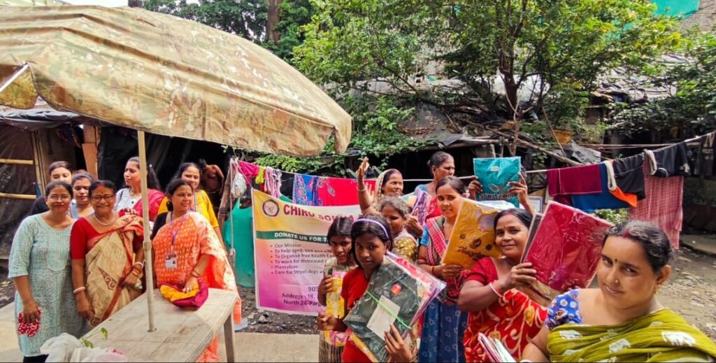 দক্ষিণেশ্বর মন্দিরের অনতিদূরে বড় অবহেলায় দিন কাটে এই বস্তির বাসিন্দাদের। নোংরা জমা জল ও আবর্জনার দুর্গন্ধে এখানে পুজোর মন ভোলানো সুগন্ধ পৌঁছয় না বললেই চলে। ছেঁড়া প্লাস্টিক, ফুটো টিন দিয়ে কোনও ভাবে মাথা গোঁজার ঠাঁই বানিয়ে দিন গুজরান করেন তাঁরা। এঁদের অধিকাংশই দিনমজুর বা গৃহকর্মী। প্রতিদিনের জীবনযাপনের লড়াইয়ে পুজো বা উৎসবের আনন্দ তাদের কাছে বিলাসিতা মাত্র। কিন্তু এবার সেই ছবিটা বদলে দিল চিরসখা ফাউন্ডেশন। সংস্থার সদস্যরা পুজোর অনেক আগে থেকেই এই উদ্যোগের প্রস্তুতি নিয়েছিলেন। বাড়ি বাড়ি গিয়ে পরিবারের সদস্য সংখ্যা এবং তাদের পছন্দ-অপছন্দ সম্পর্কে তথ্য সংগ্রহ করেন তাঁরা। সেই অনুযায়ী কেনা হয় শাড়ি, টি-শার্ট, ফ্রক, সহ বিভিন্ন ধরনের পোশাক।